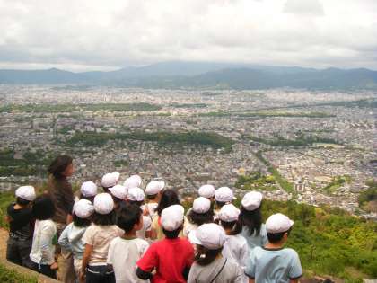 3年生の『大文字山』の遠足では,みんなで励まし合いながら登りました。頂上はかなり寒かったですが,空気もきれいで,京都の町のながめは最高でした。