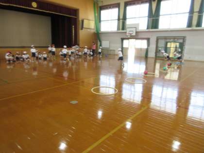 体力テストを予定していましたが,グランドコンディションがよくないため,明日に延期になりました。体育館では,体育でリレー遊びをしました。でもよく見ると1学年にしては人数が多いと思いませんでしょうか。実は,1.2年生合同で体育をやっています。本校では,少人数のため,サッカーや野球などチームを作って楽しむ体育の授業がなかなかできません。そのため,こうして隣接学年と合同で体育をする機会を意図的に増やしています。子どもたちに人数が増えてゲームや競争ができてうれしそうでした。