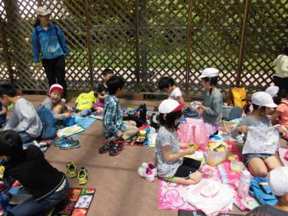 1・2年生で植物園へ行きました。春の植物を見つけに,たてわりグループでウォークラリーをしました。学校に咲いている花と同じ花見つけをしたり,アイマスクをして木を触って,触った木を見つける「木あてクイズ」をしたりして春の自然を楽しんで触れ合っていました。終わった後はグループでご飯を食べ,みんなあそびをしました。