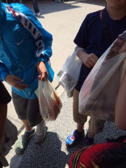 宮島の参道の商店街でもおみやげを買いました。たくさん買って値引きしてもらったりもしていました。どんなおみやげを持ち帰るか楽しみにしていて下さい。