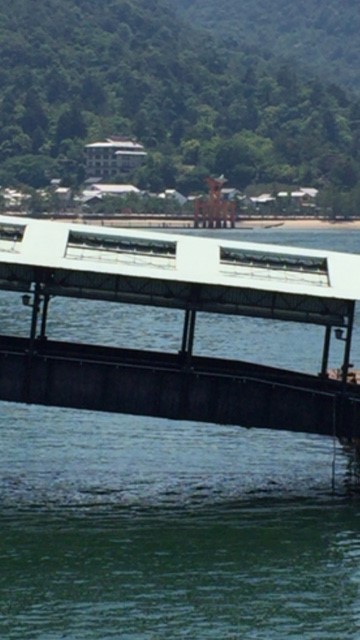 いよいよ宮島ともお別れです。みんな船の上から名残惜しそうに眺めています。朱塗りの大鳥居をしっかりと目に焼き付けて,京都に向かいます。
