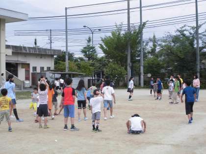 1年生が生活科「仲良しいっぱい大作戦」の一環として、6年生をドッチジボールに誘ってくれました。終わる時間になっても1年生は「もっとやりたい!」と名残惜しげでした。6年生はとったボールを1年生を守ってあげたり,とったボールを1年生に渡してあげたりと優しい顔で関わっていました。これからも1年生と6年生の仲が良い姿がたくさん見られることを願っています。