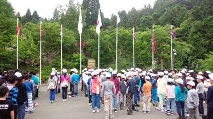 合同の朝の集いです。今日は,登山がありますが,何とか天気はもちそうです。