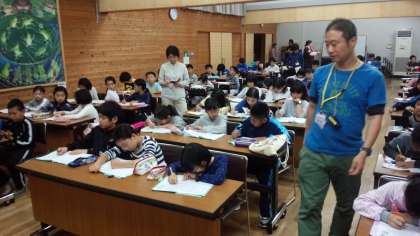山登り終えて振り返りを書いています。山登りが初めてで,今まで経験いたことのないような充実感を書き綴っているいる子もいるのではないでしょうか。