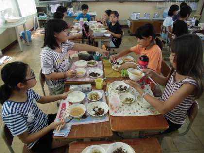 今日は和献立でした。今が旬の冬瓜や伏見とうがらしを使用しました。やわらかくてだしがしみ込んだ冬瓜は子どもたちにも食べやすかったようです。伏見とうがらしの甘みと苦みもしっかりと味わってくれました。
