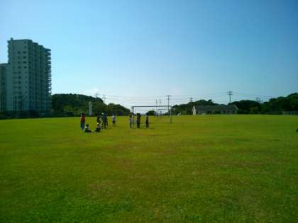 磯観察に行くまでの間,時間があるので,芝生広場で遊んでいます。紫明小学校のお友達とも,ドッチボールなどをして楽しんでいます。