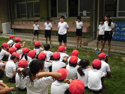 今日は,2色集会がありました。場所は体育館と中庭に分かれて練習をしました。応援団が頑張って,応援の仕方を教えてくれました。日に日にみんなの気持ちが盛り上がってきているようです。運動会当日は,是非,温かい声援を送っていただきますよう,お待ちしております。