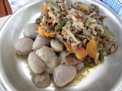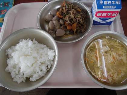 今日の給食では,月見にちなんで里いもの煮つけを食べました。