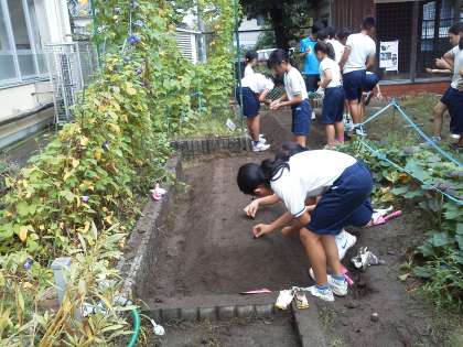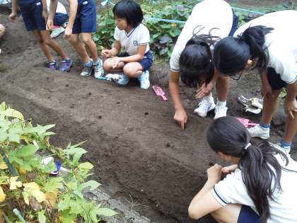今年も地域の方のご紹介で亀岡市の農家の方に来ていただき,大根の種まきをしました。畝を作って肥料をまいて・・・・といろいろやってからようやく種をまくことができました。これから毎日水をやったりして様子をみていきます。