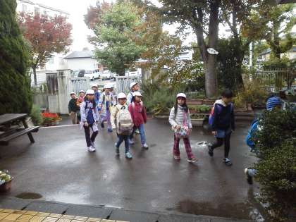 遠足から,12時40分に帰校しました。みんな少し寒そうな感じなので,暖房を入れて,濡れた身体を拭いて,昼食を食べます。午後は,体育館でたてわりで遊ぶ予定をしています。
