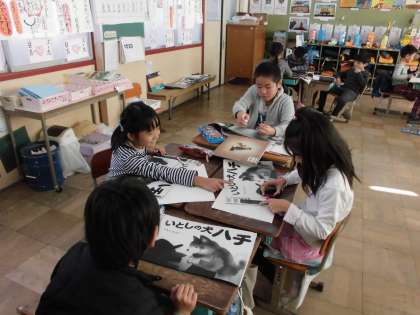 国語科「スーホの白い馬」の学習で,相手のことを思っているところで心に残ったところに線を引き交流した後で,あらすじを書きました。前の時間に,「スーホの白い馬」の教材で同じことをしたので,今日は自分が選んだ本について,グループごとで取り組みました。交流をする中で,友達がみつけたところも付け足して書くことができました。