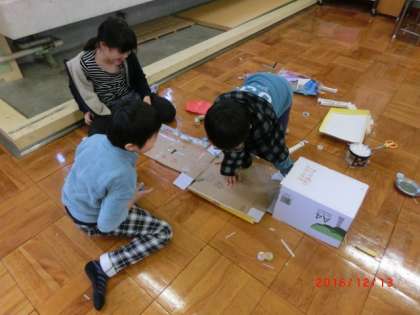 作ったおもちゃやゲームを学年で交流しました。お店屋さんをする人とお客さんになる人に分かれて,順番に遊んだ後で,一年生に楽しんでもらうためにはどこをより工夫すればいいのかアドバイスし合いました。「教えてもらったことをいかして,もう少しルールをくわしくしたいな。」「どんなお店かアピールしたいから,看板をつくりたいな。」など,今日の交流を生かしていきたいという声がたくさんでてきたので,次はより楽しんでもらうための工夫をしていきたいと思います。