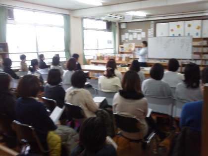 10時から図書室で絵本店を経営されている花田睦子氏を講師にお招きして,北上支部PTA指導者・はぐくみ委員会研修会,元町小学校家庭教育学級・就学前子育て講座がありました。