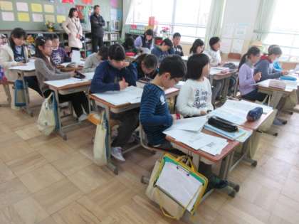 今日とあすは,自由参観日になっています。保護者の方の他に新1年生の保護者も来られて,子どもたちも張り切って学習していました。様々な授業があり,保護者の方々も興味をもって,わが子だけでなく,他の子の様子もじっくりと見られていました。