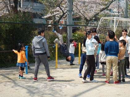 最高学年のお姉さんお兄さんとして1年生の運動場デビューを一緒に活動しました。みんな,とっても楽しそうでした。