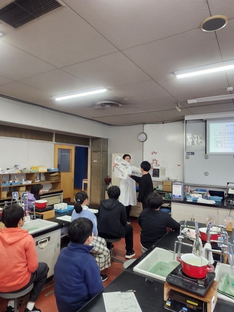 今日は、6年生が科学センター学習に出かけました。化学領域「ア~ットおどろく色のヒミツ」の学習で、子どもたちはさまざまに変わるものの色の変化に驚いていました。