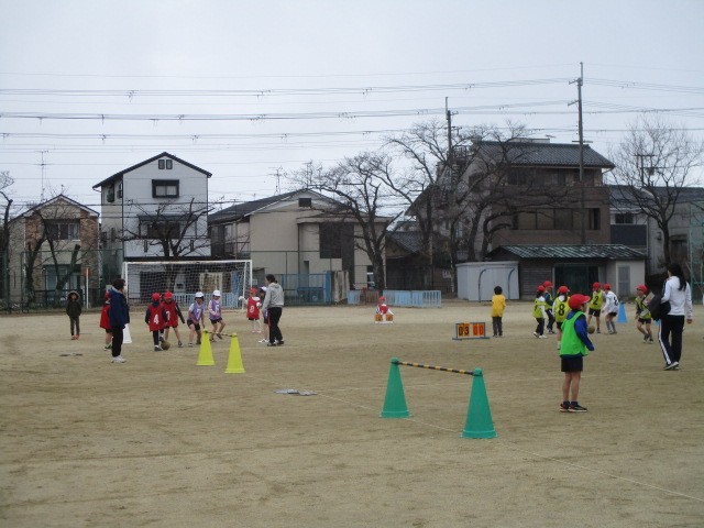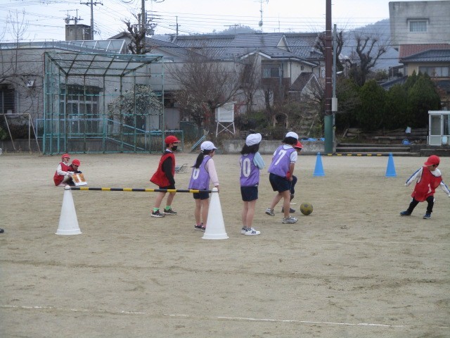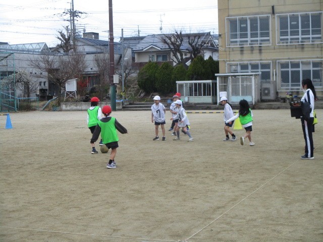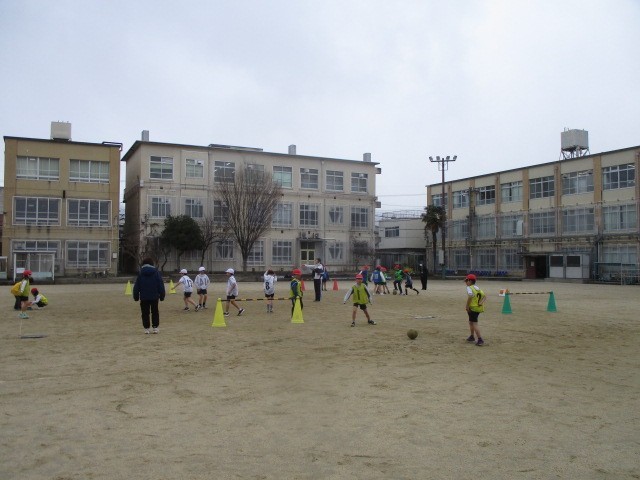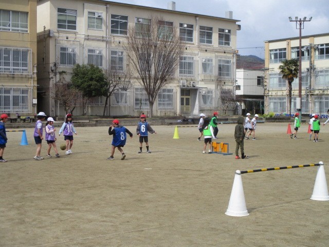 今日の3校時に、2年生は紫竹小学校へ行ってボールけりゲームをしました。2年生は児童数が7名しかいないので、なかなか自分たちでボールけりゲームをするのが難しいのですが、紫竹小学校2年生のお友達と一緒に体を動かしました。昨年度も交流学習で訪問していたので、子どもたちは楽しそうにのびのびと運動していました。