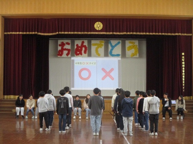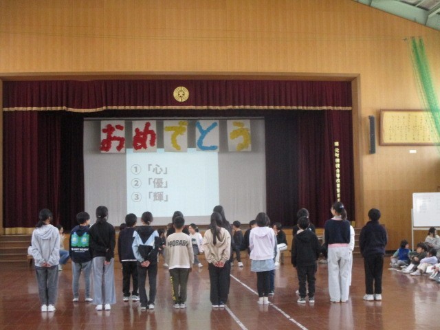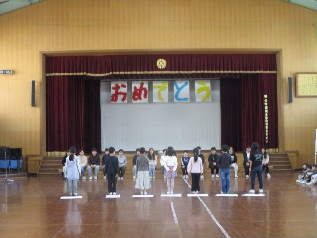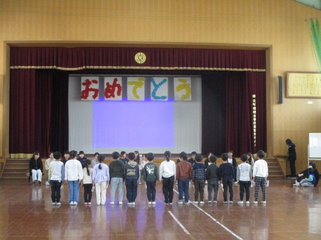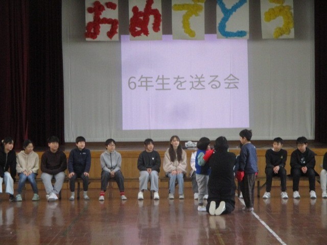 今日の5校時に、6年生を送る会を実施しました。5年生が中心となって司会などの進行を務め、各学年から6年生へのメッセージなどを伝えていました。最後には、全員で花道をつくって6年生を送り出しました。どの学年も工夫された発表だったので、とても和やかな送る会になりました。