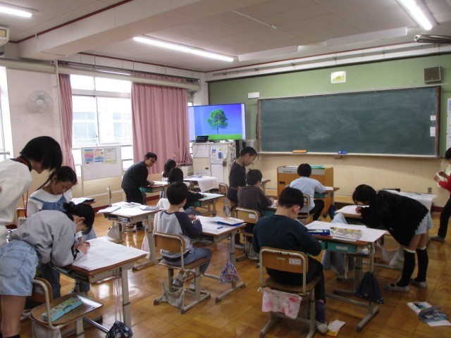 今日の4校時の様子です。3・5年生は、学年の作品袋にそれぞれ好きな絵を描いていました。6年生は、教室内をみんなできれいにしていました。