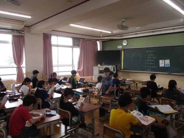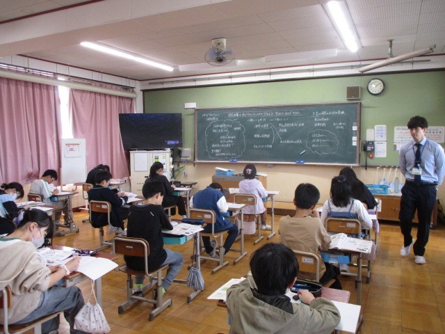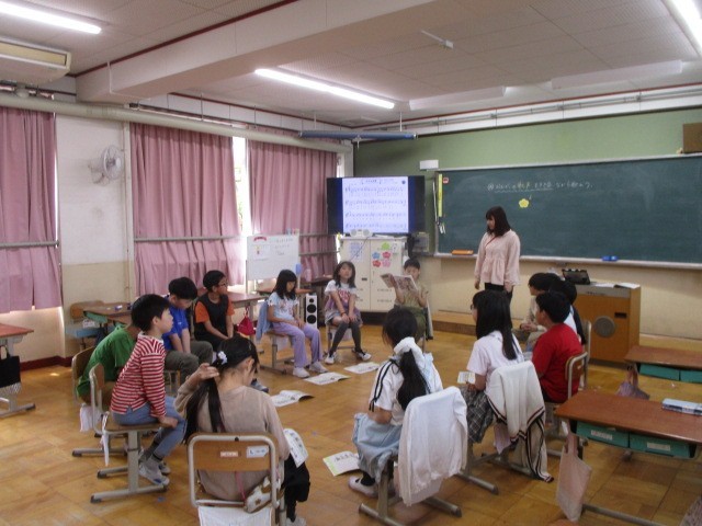 今日の3校時の様子です。2年生は、国語で新出漢字の練習を頑張っていました。4年生は、音楽で少し座り方を変えて歌唱の学習をしていました。