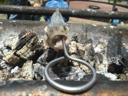 串に刺した魚を炭火で焼いて,熱々の内にいただきました。美味しいっ!