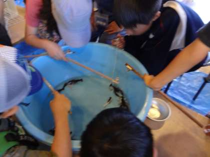 しかけのあるおもちゃやいもり,ザリガニなどを触って大喜び。