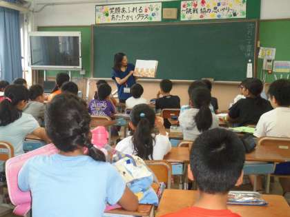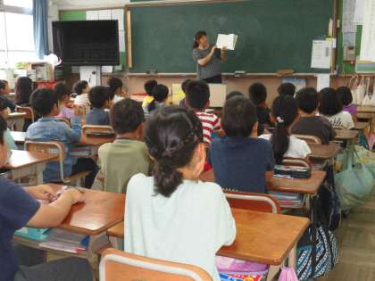 「あじさい読書週間」の取組のひとつ,教職員による読み聞かせを行いました。担任をしている学年とは違う学年の子どもたちにお気に入りの1冊を!・・・子どもたちはしっかりと心を向けて聴き入り,本の世界に入り込んでいました。