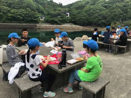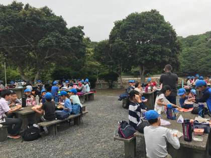 到着が少し遅れたので,予定を変更して,先にお弁当を食べることになりました。