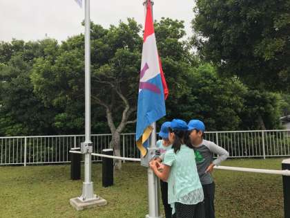 校歌に合わせて旗をあげました。司会も頑張っています。