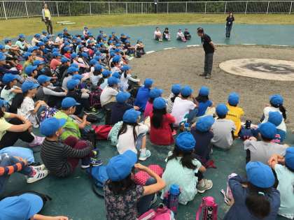 お弁当を食べた後,第1営火場で入所式を行いました。