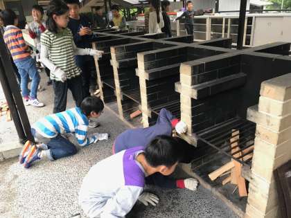 かまどの準備は学校で経験済みです。火をつけるのもテキパキと進めることができました。