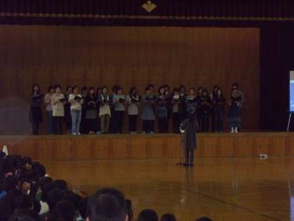 5年生の学習発表会の後,PTAコーラスの発表がありました。いきものがかりの「ありがとう」と「世界が一つになるまで」の素晴らしい歌声でした。PTAコーラス交歓会が楽しみです。