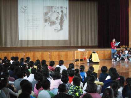 最後に6年生が,「おりづるの旅」という絵本の読み聞かせをしました。