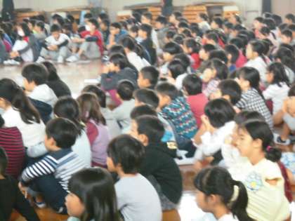 読み聞かせの後,6年生から,修学旅行にむけて全校で平和を願う千羽鶴を作ろうと呼びかけがありました。たてわりグループで取り組む予定になっています。