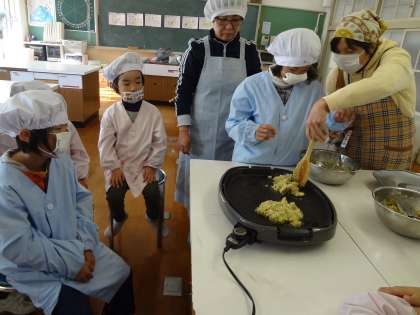 今日は,畑で収穫したサツマイモを使ってチヂミ作りに挑戦!