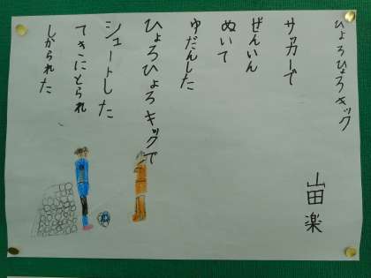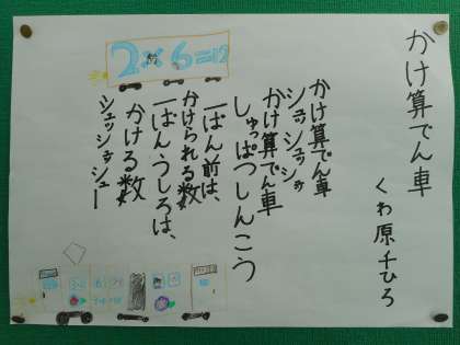 階段の踊り場でステキな詩の作品を見つけました。2年生が身近なもの・ことを素材にして詩を書いたようです。