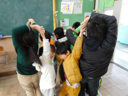 15日(木)に全校で「スーパーたてわりラリー」を行いました。前期に行った後の反省等を生かし,シンプルに改善して行いました。