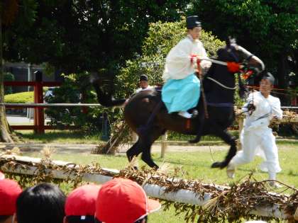 上賀茂神社で行われた「足汰式」を6年生が見学に行きました。間近に見る迫力の走りに驚きの声を上げながら見て,拍手を送っていました。