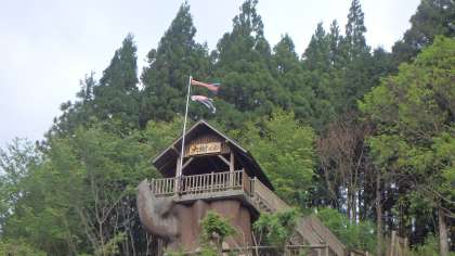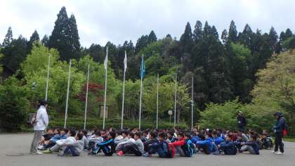 日差しがあたたかく,活動しやすくなってきました。今夜のナイトハイクのルートをみんなでたどってみました。昼間はただの山道にしか見えませんが,夜になると星明かり,月明かりが頼りになります。明るいうちに危険な場所を確認し,本番迷うことなくスムーズに巡ってこられるように,前後左右上下を注意深くチェックしながら歩きました。最後は,山の家のシンボル的な建造物「大樹くん」に行き着くはずです!