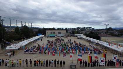 心配されたお天気も快方へ向かい学区民体育祭が開催されています。開会式では,本校の児童がそれぞれの部活チームに分かれ,堂々と入場行進を行いました。