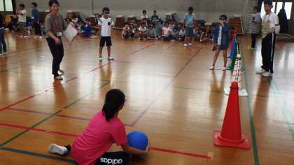 最初は,戸惑っていた子どもたちでしたが…さすがですね!みるみる上達してボールをスムーズに回していました。今日も貴重な体験をさせていただきました。社協のみなさまお世話になりました。ありがとうございました。