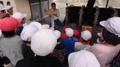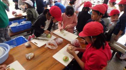 さあ,ドキドキの初体験!野外炊事の時間です。調理班とかまど班に分かれて準備に奮闘しました。かまどの組み方については,校長先生からレクチャーを受けました。どの班も上手に火がつきました。準備はOK!後はお鍋を待つだけです。