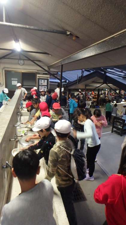 食べ終わったら,ごちそうさま…では終わりません。後片付けも自分たちで行います。食器やスプーン,お鍋はもちろん,テーブルの上から下までも「来た時よりも美しく」を合言葉に徹底的にきれいにして帰ります。先生たちが目を光らせて厳しいチェックをしていますよ!がんばれ!