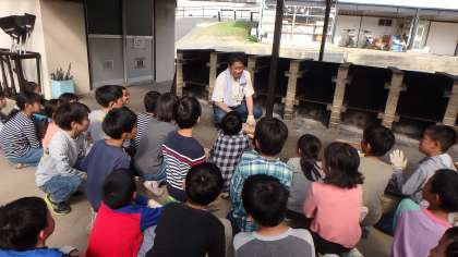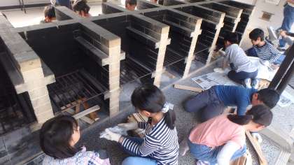 さあ野外炊事が始まりました。今夜はすきやき風煮をつくります。重要なのは,やはりかまどの火加減です。まずは薪の組み方について校長先生からレクチャーを受けました。やってみるとなかなかうまく火がつきません。失敗をくりかえしながら,どの班も強力なかまどをつくることに成功しました。後は,食材が調理されるのを待つばかりです。