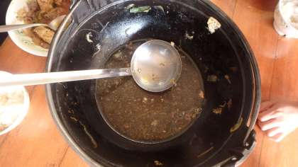 少し早目の夕食かな?と思いきや食がすすむこと…あっという間にお鍋はからっぽ!ごはんのおかわりにも行列ができていました。みんなで力を合わせてつくったすきやき風煮の味は格別だったようです。