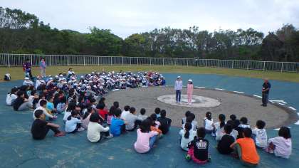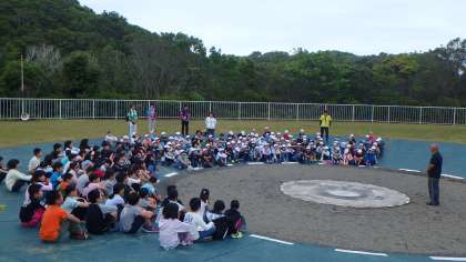 今朝は,一緒に宿泊している祥豊小学校と合同で朝のつどいを行いました。互いの校歌と学校紹介を披露し合いました。上賀茂小学校がフタバアオイを育てていること,自分からすすんであいさつすることに取り組んでいることを紹介していました。「あいさつ」は,みさきの家の合言葉にもあります。短い間ですが,気持ちのよいあいさつを心がけ,親睦を深めてほしいと思います。