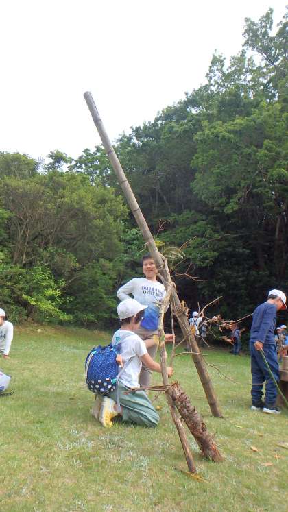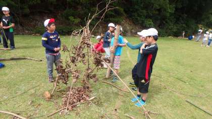 子どもたちのアイデアには感心させられるばかりです。木を組み合わせてテントのような家を創造したり,大砲のような巨大なオブジェをつくったり,おしゃれなおそろいのネックレスにしたり…子どもたちの生き生きとした,とっても誇らしげな表情を見ると大人も童心にかえりたくなります。ほんわかと心あたたまる時間でした。