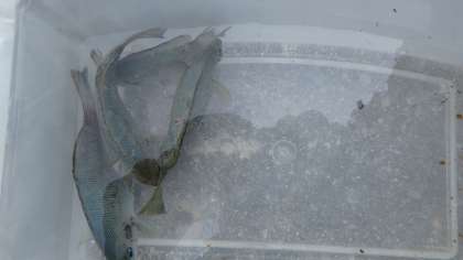 つかまえた魚をみんなで観察しました。実際に手に触れることもできて,子どもたちは満足気でした♪