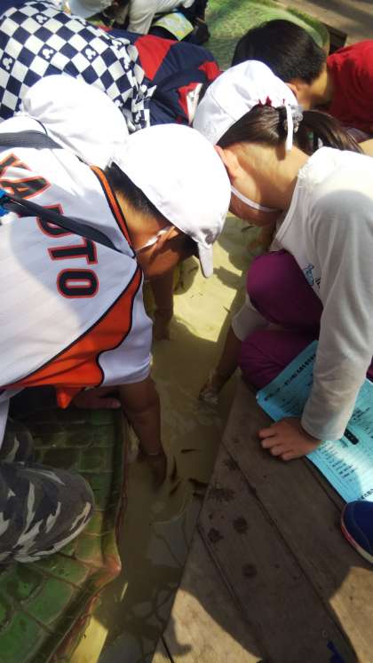 その正体は、ドクターフィッシュ❗️古くなった皮膚の角質を食べてくれるので、手を入れるとすぐに集まってきます。最初はこそばくて気持ち悪いのですが、だんだんくせになってくる不思議な感触なのです。リピーターになる子どもたちが続出です♪