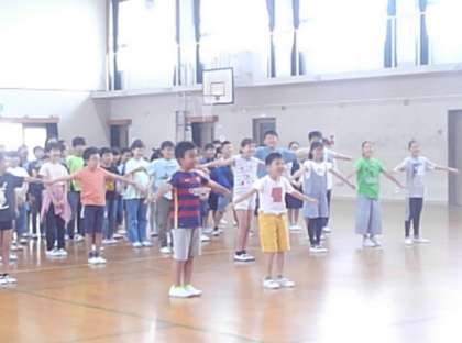 各クラスで練習をしてきたことを学年でそろって練習しました。